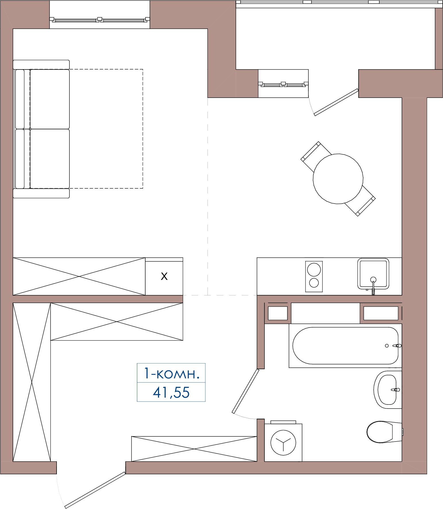 1-комнатная 41.55 м2