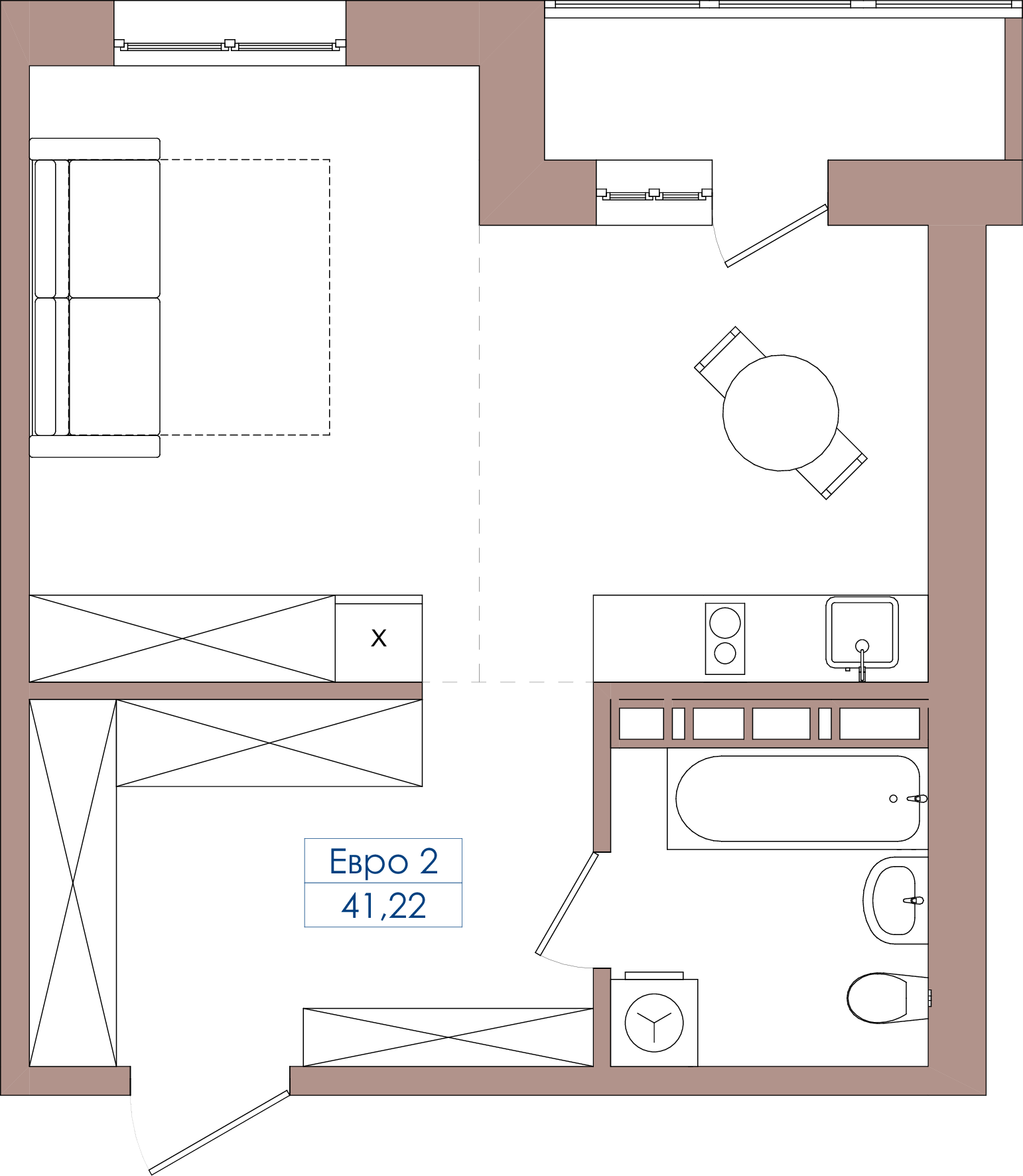 1-комнатная 41.22 м2